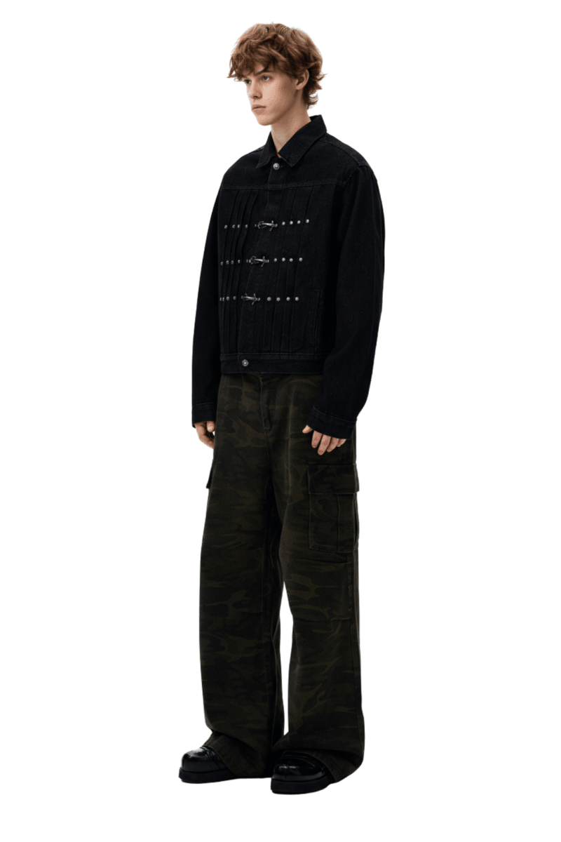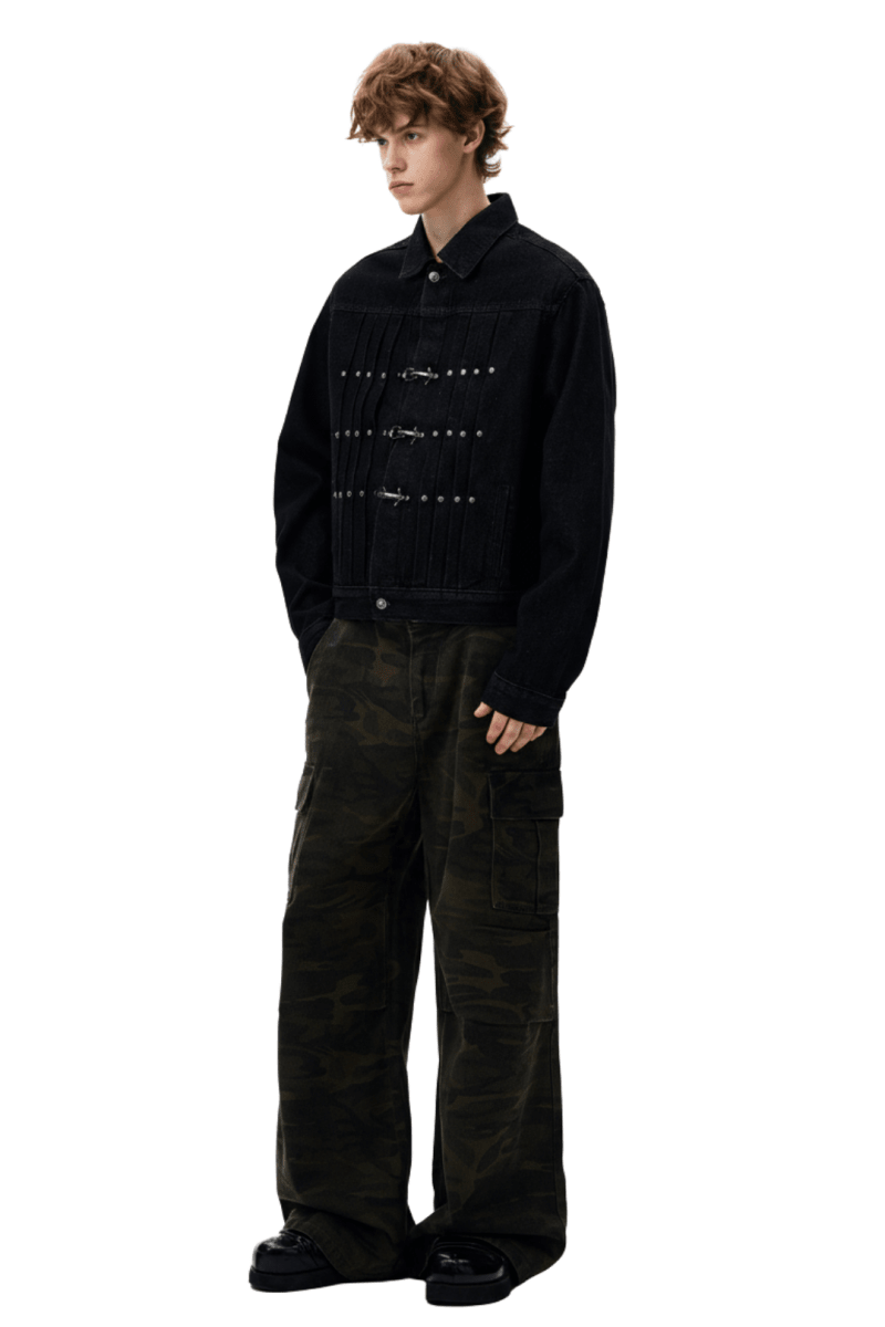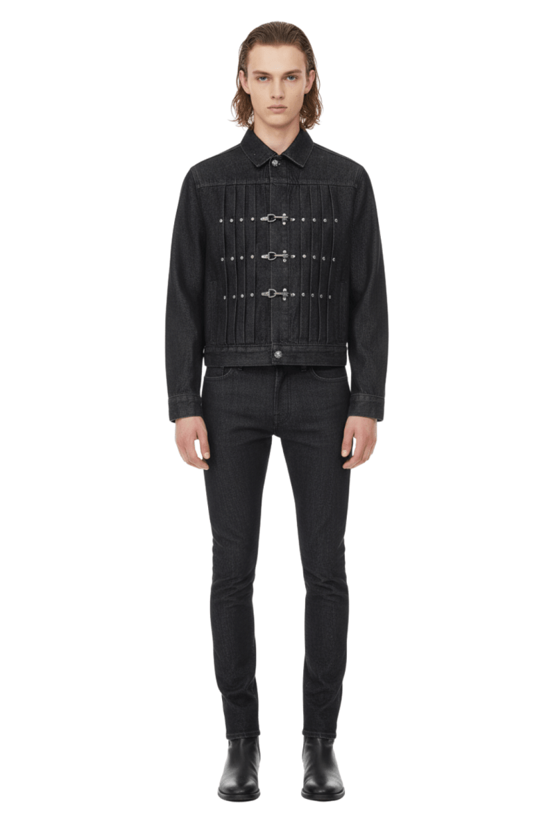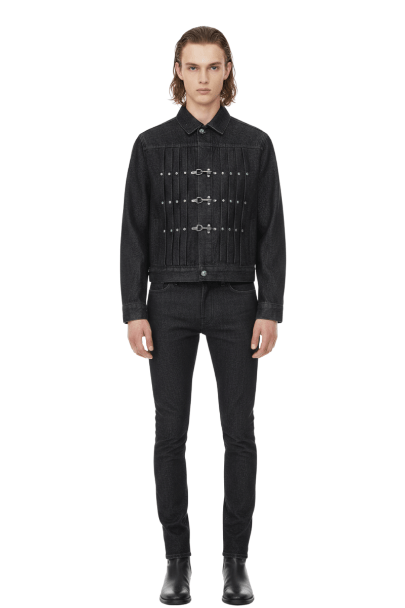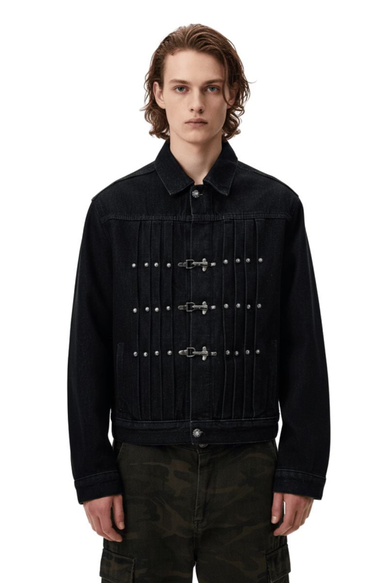 Vintage Black Studded Hook Denim Jacket na2386