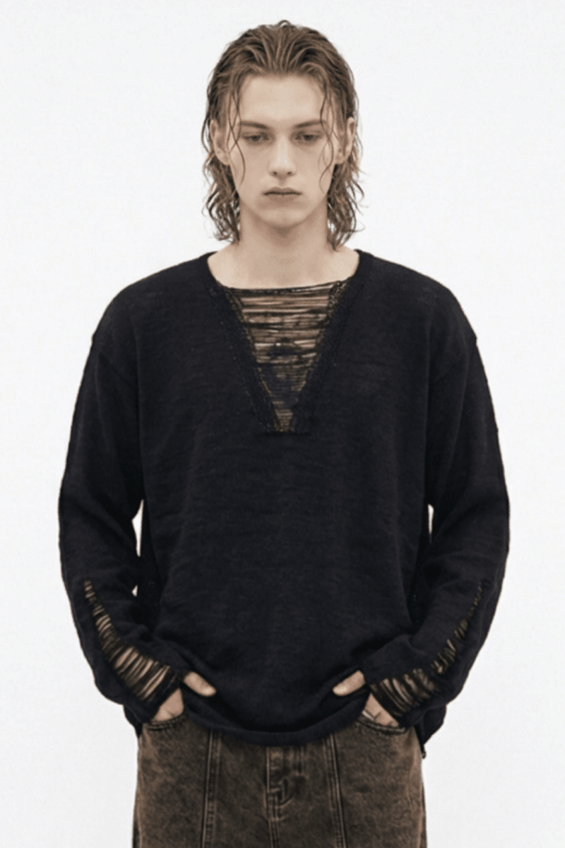 [GIBBYCNA] Damage Zipper Hoodie & Wide-leg Damage Sweatpants na1036