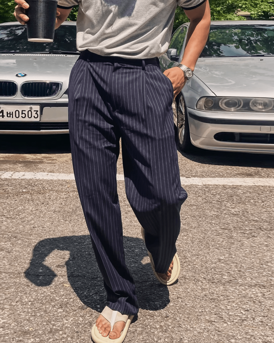 blue striped straight pants na1982