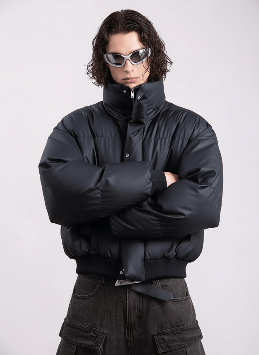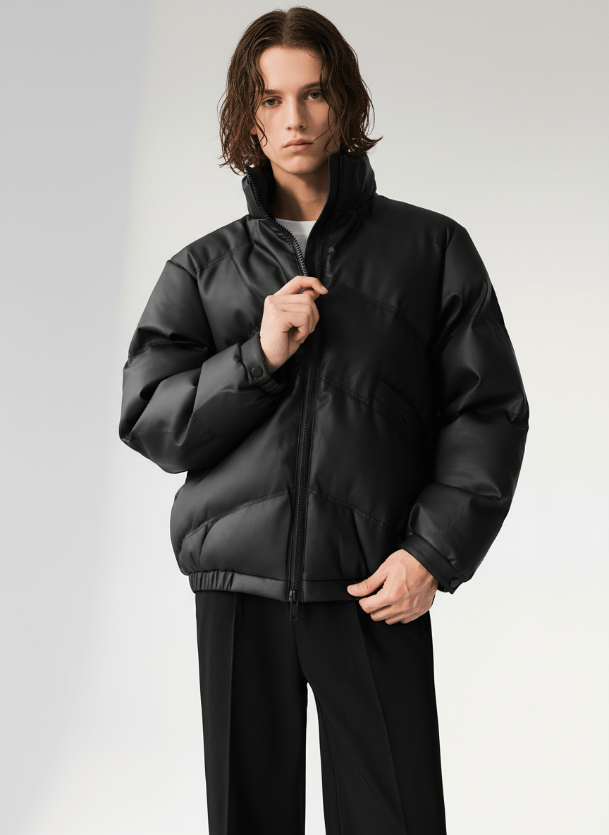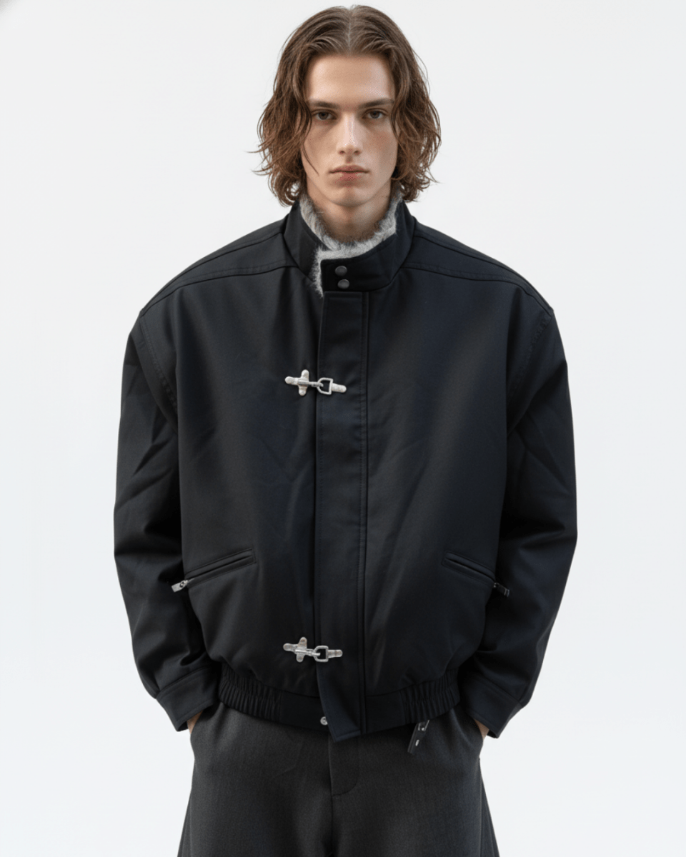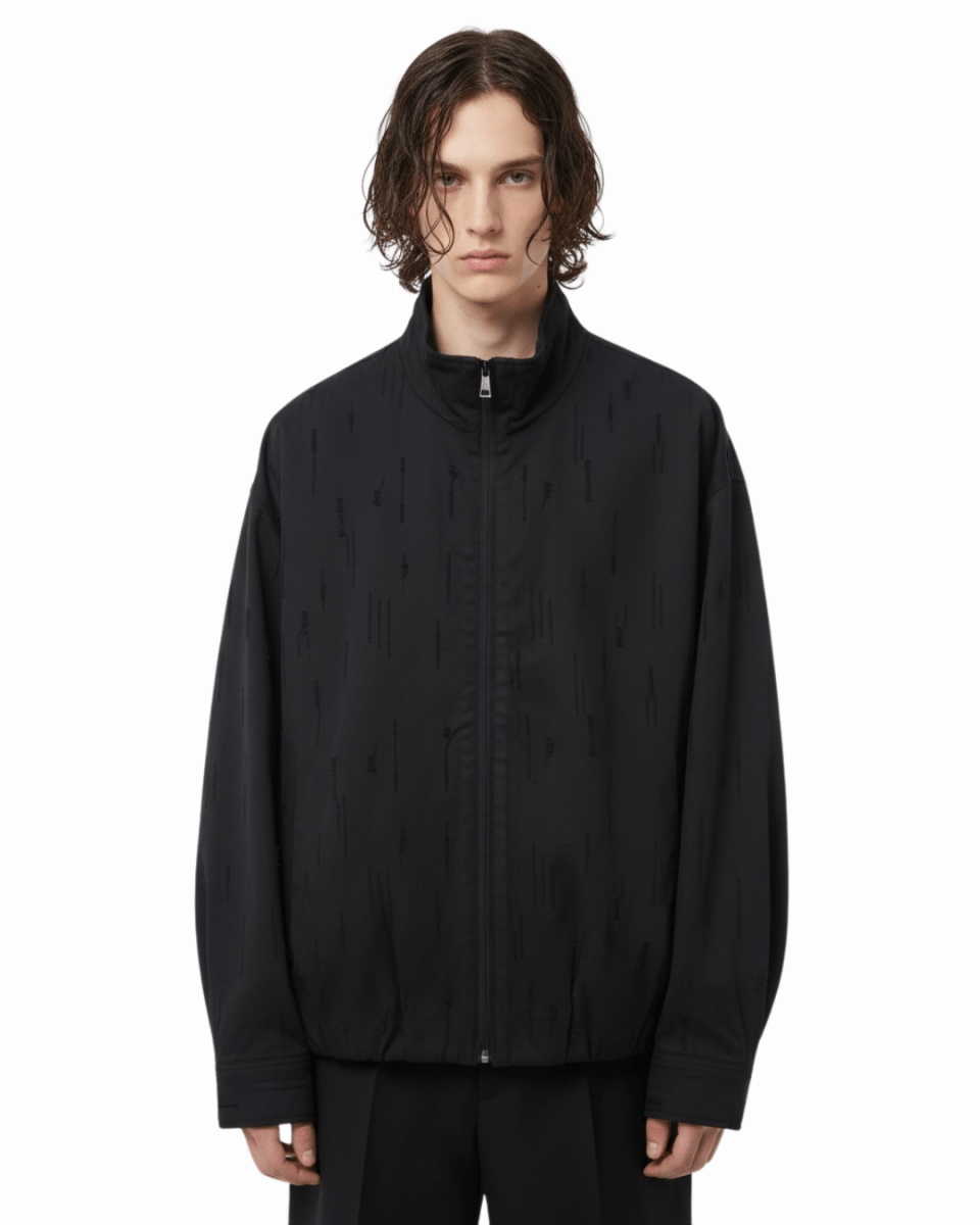 [Nanostudio]Black Oversized Nylon Zip Jacket na2226