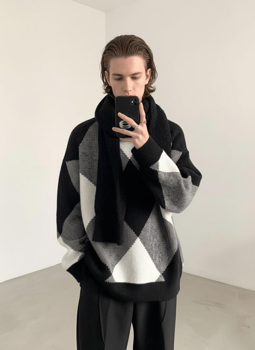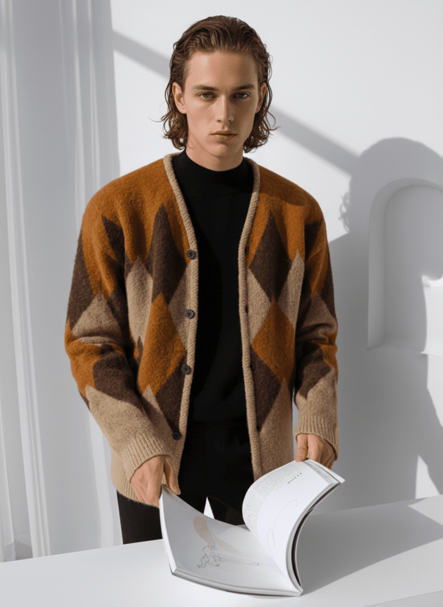 [MRCYC] Argyle Pattern Loose Cardigan NA528