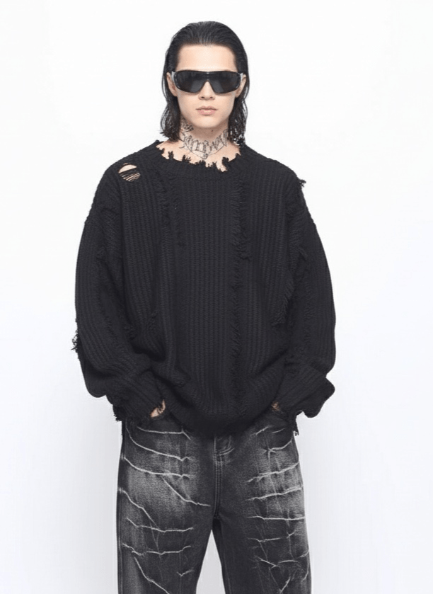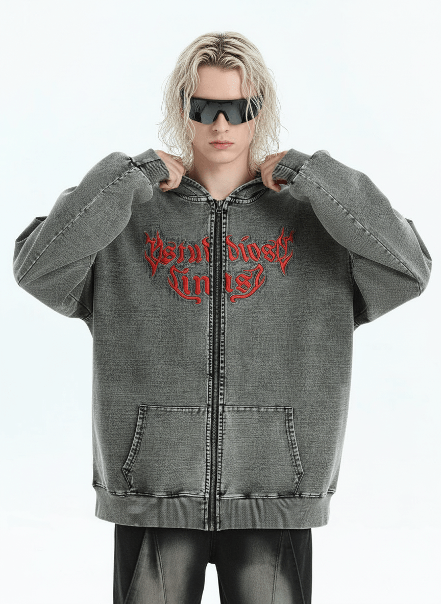 [GIBBYCNA] Damage Zipper Hoodie & Wide-leg Damage Sweatpants na1036
