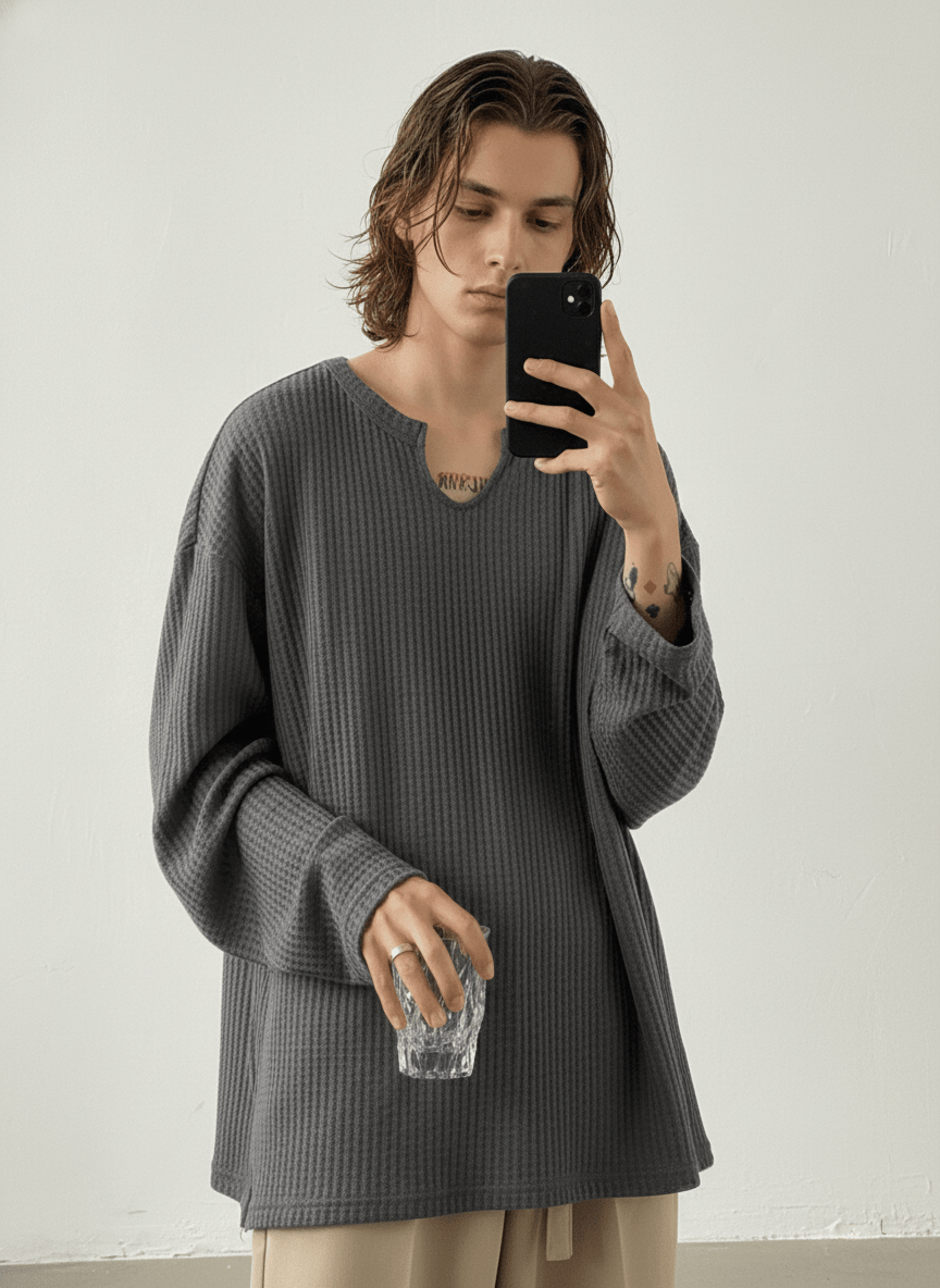 [Nanostudio] Gradient Waffle Knit Cardigan na2225