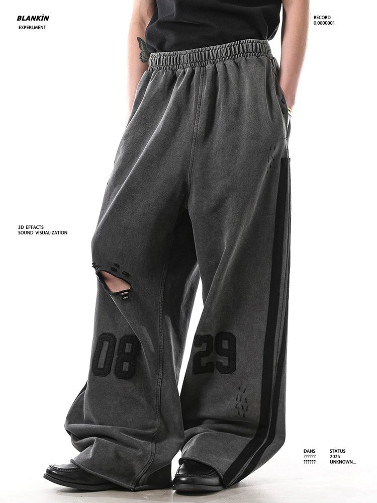 [GIBBYCNA] Damage Zipper Hoodie & Wide-leg Damage Sweatpants na1036