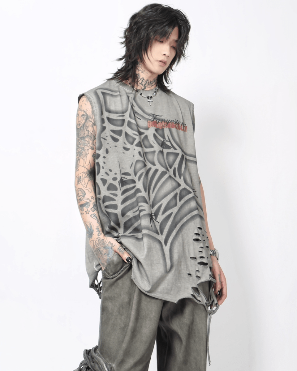 [GIBBYCNA] Damage Zipper Hoodie & Wide-leg Damage Sweatpants na1036