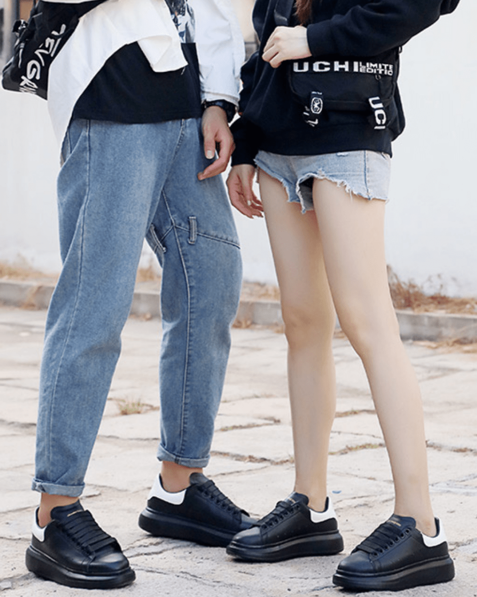 ❶ 키높이 신발을 착용한 사실이 전혀 드러나지 않도록, 완벽하게 티 나지 않게 디자인되었습니다.