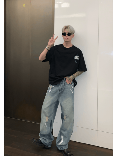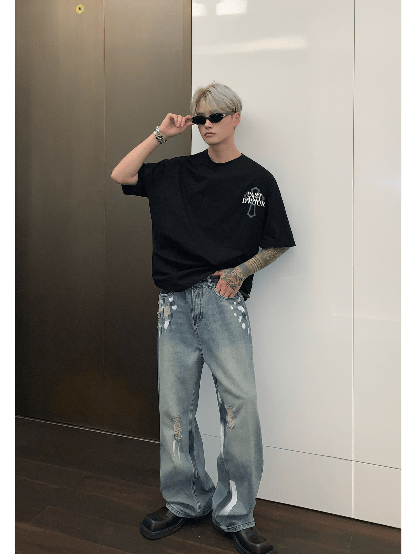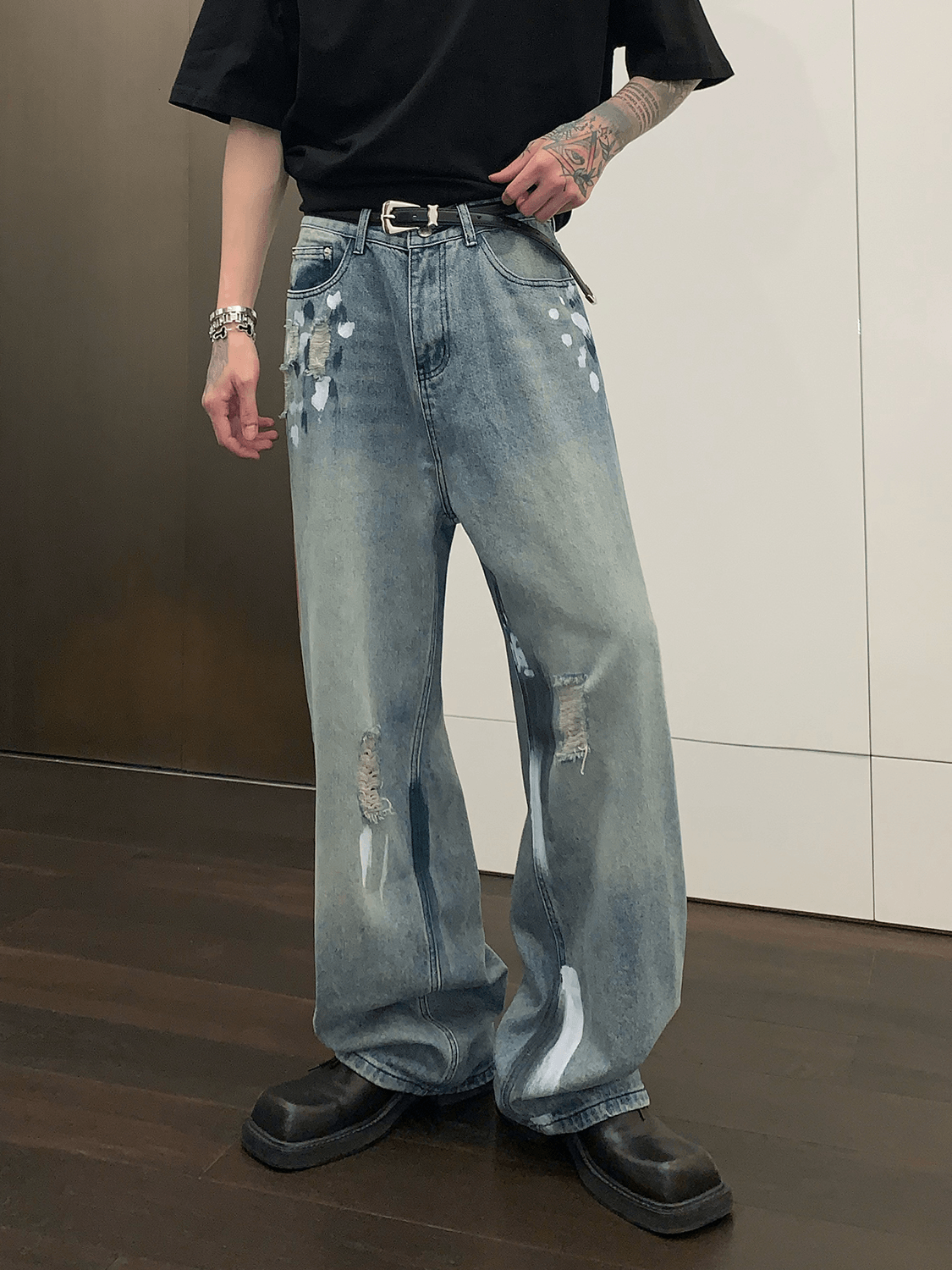 [CUIBUJU] street graffiti contrast color straight jeans na759