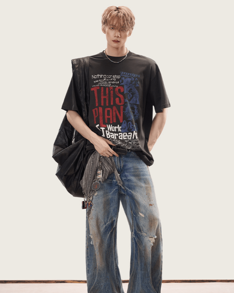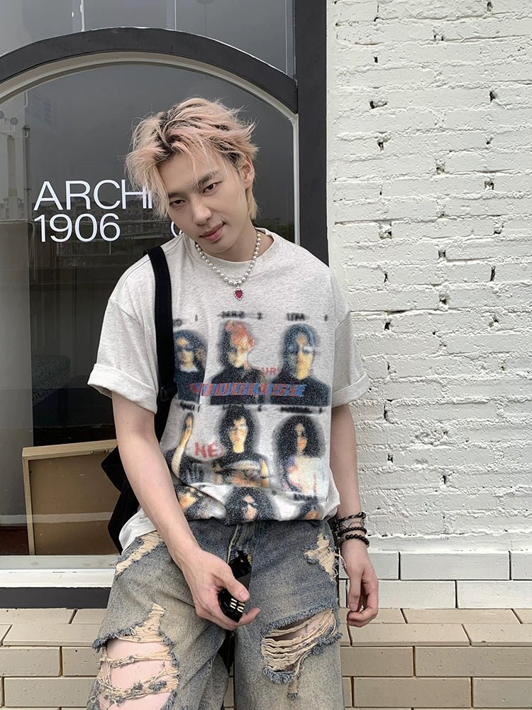 [GIBBYCNA] Damage Zipper Hoodie & Wide-leg Damage Sweatpants na1036