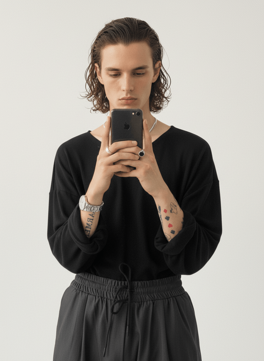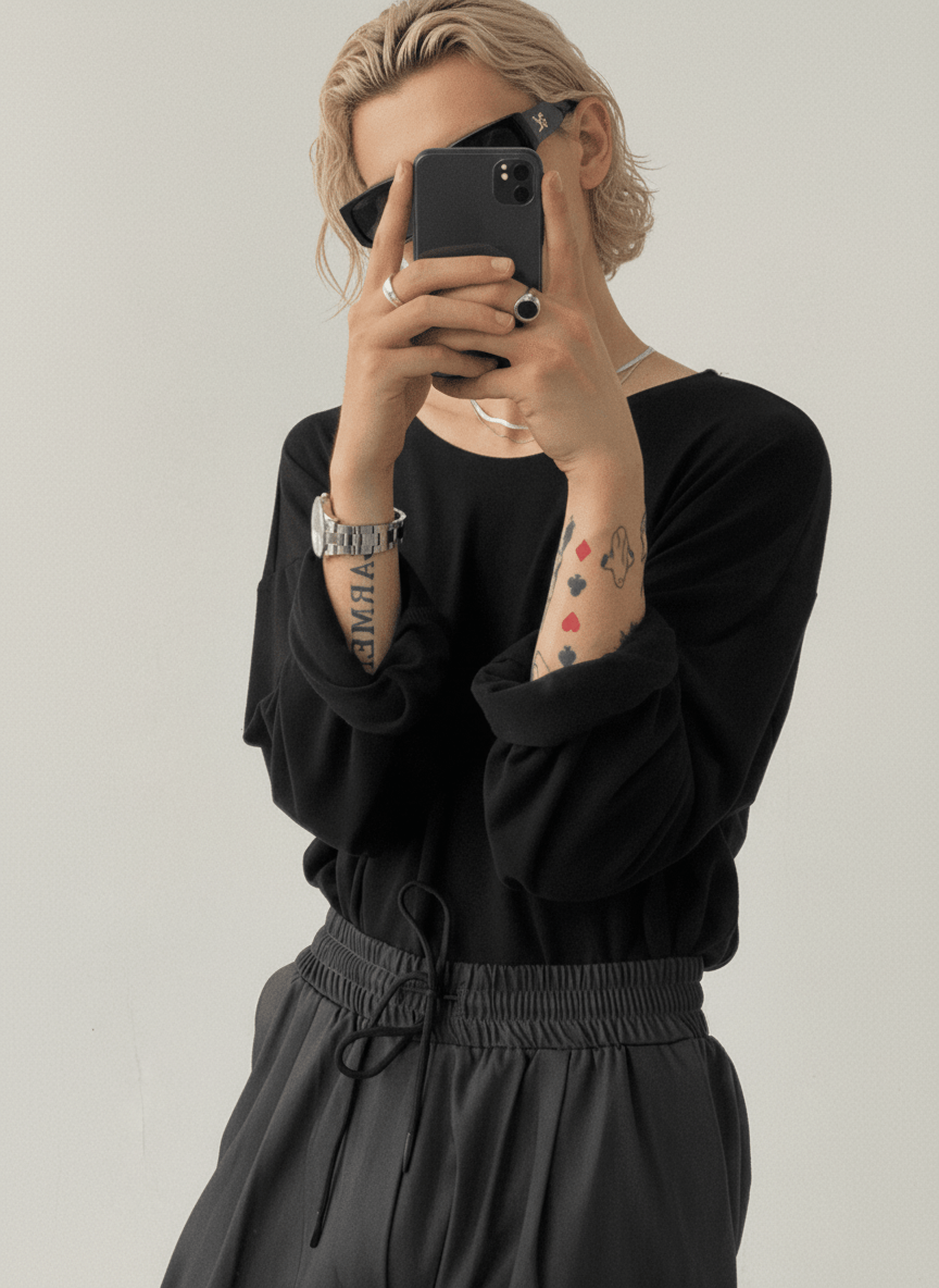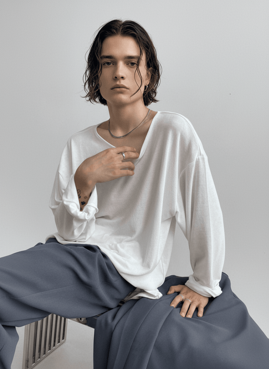 [GENESISBOY] Wool feel fabric high T-shirt NA303