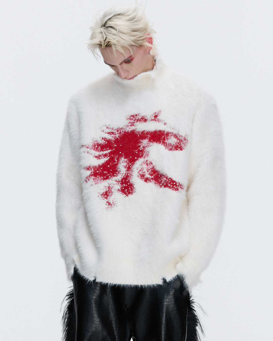 [GIBBYCNA] Damage Zipper Hoodie & Wide-leg Damage Sweatpants na1036