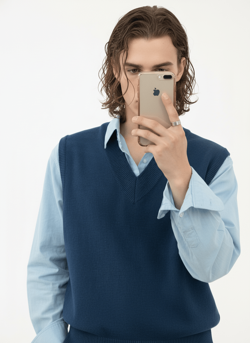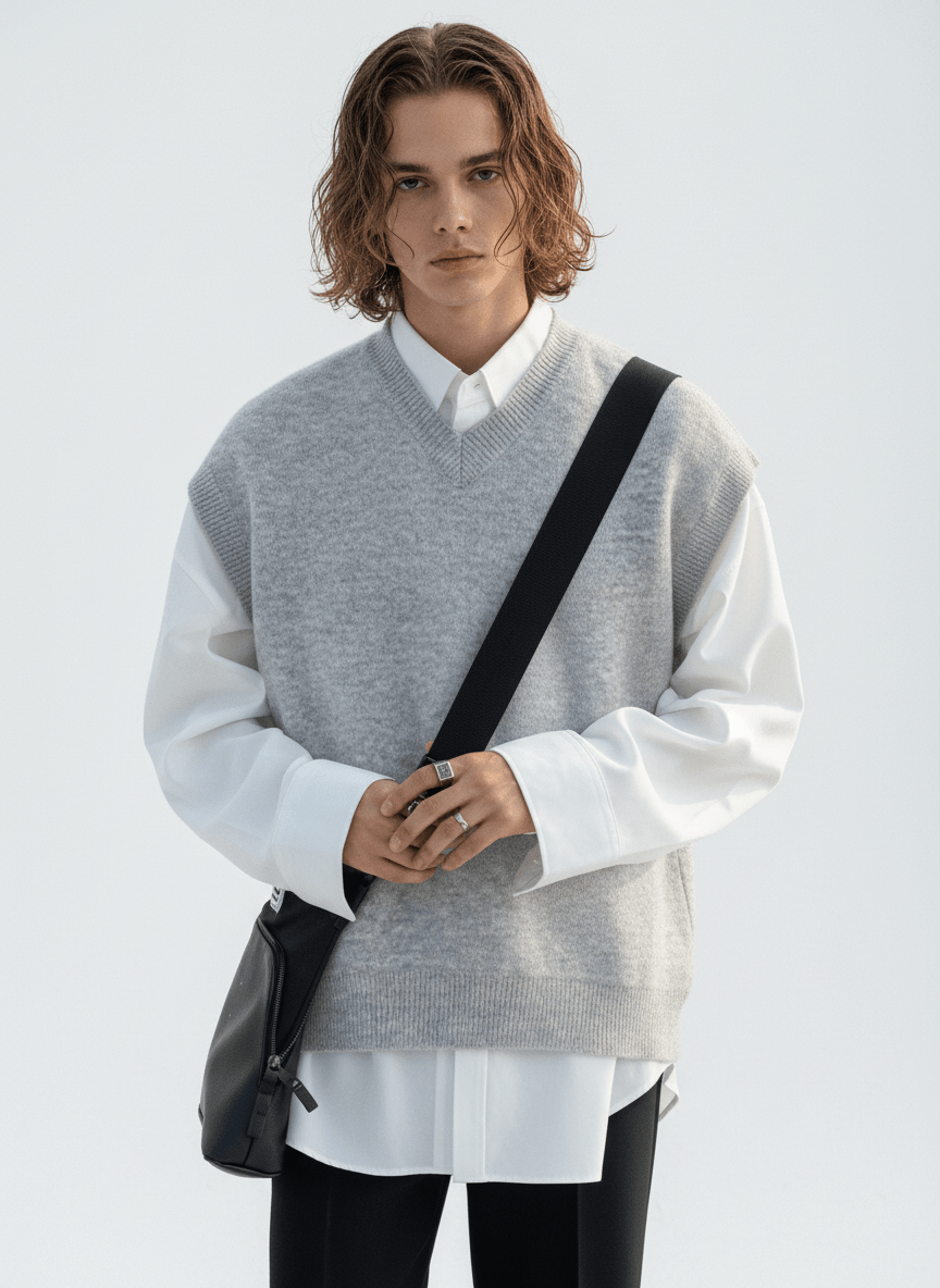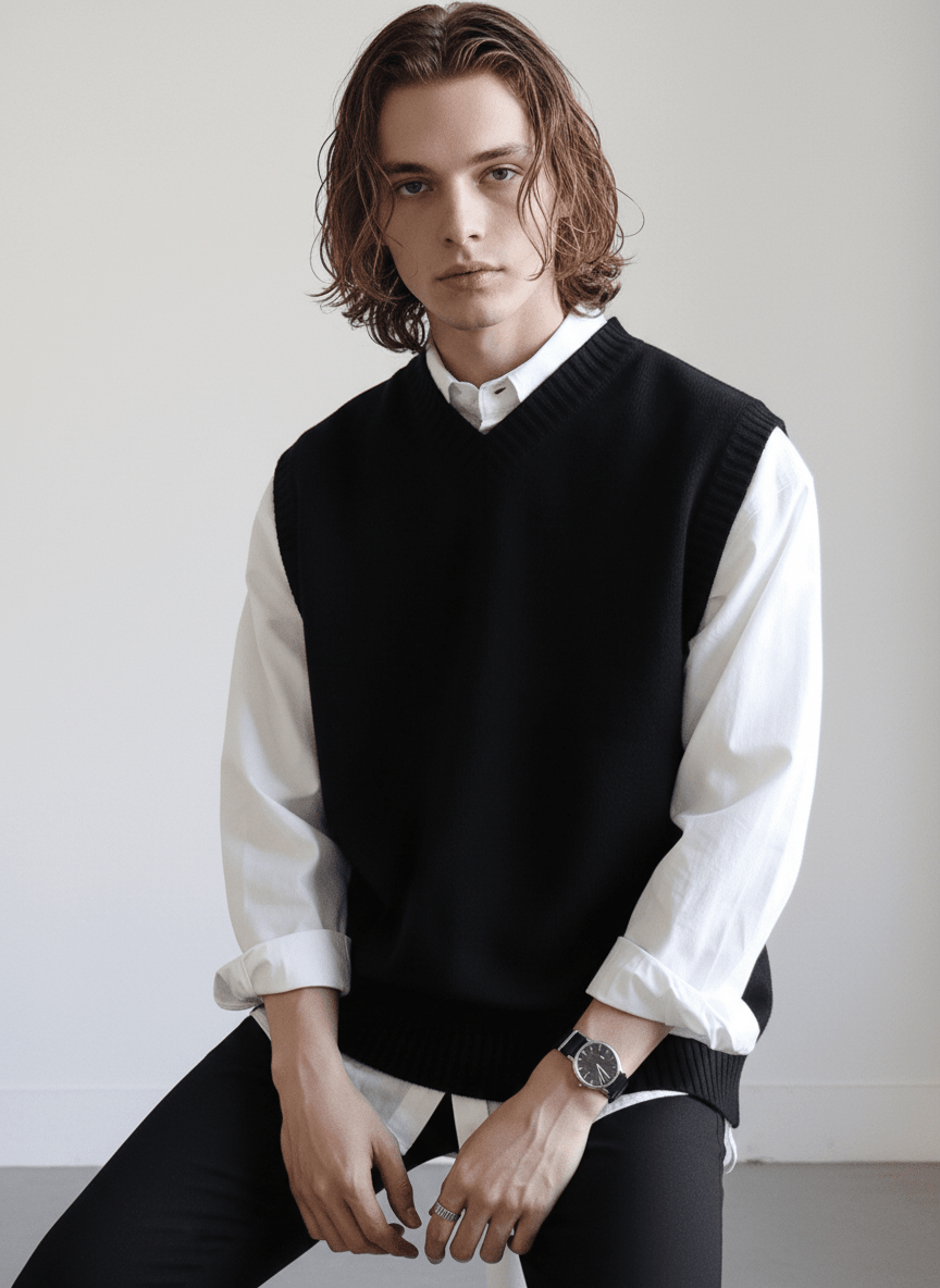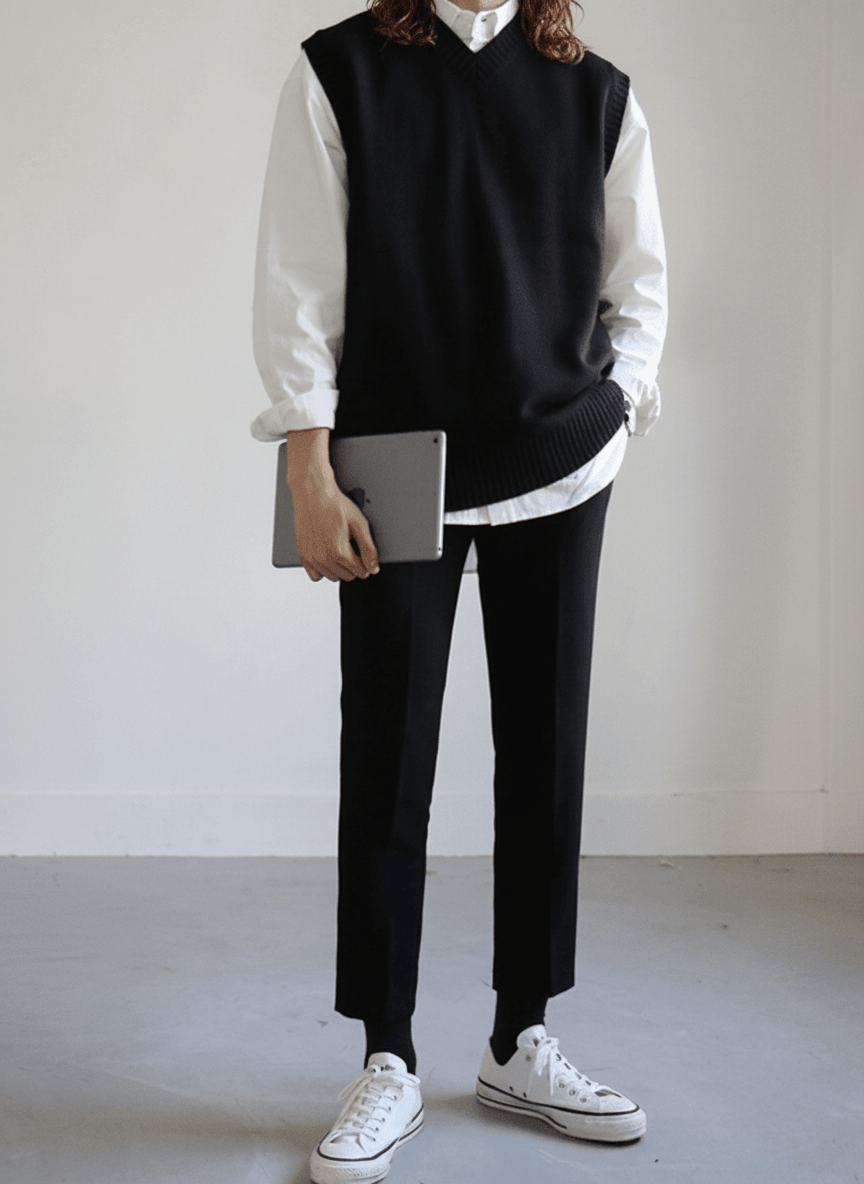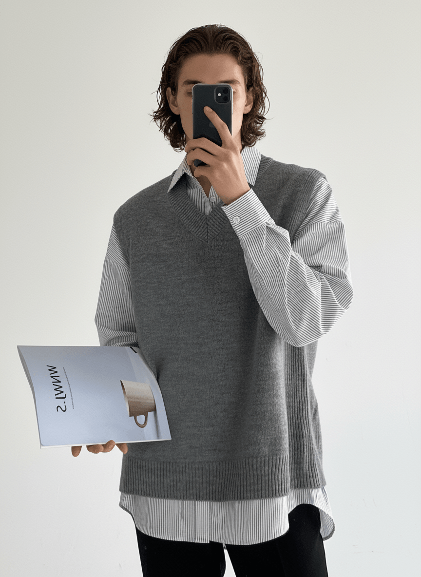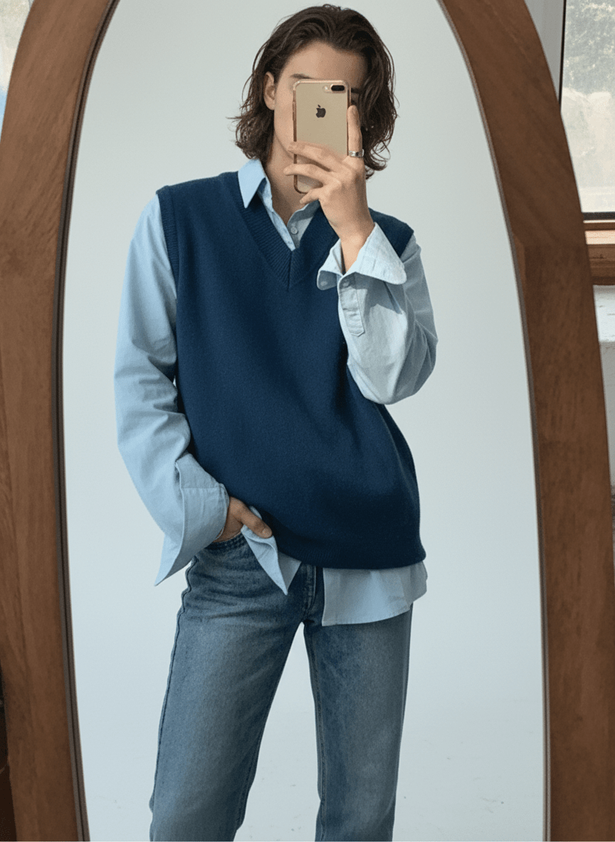 깨끗한 눈 코데에 맞추기 쉬운 심플한 니트 베스트.