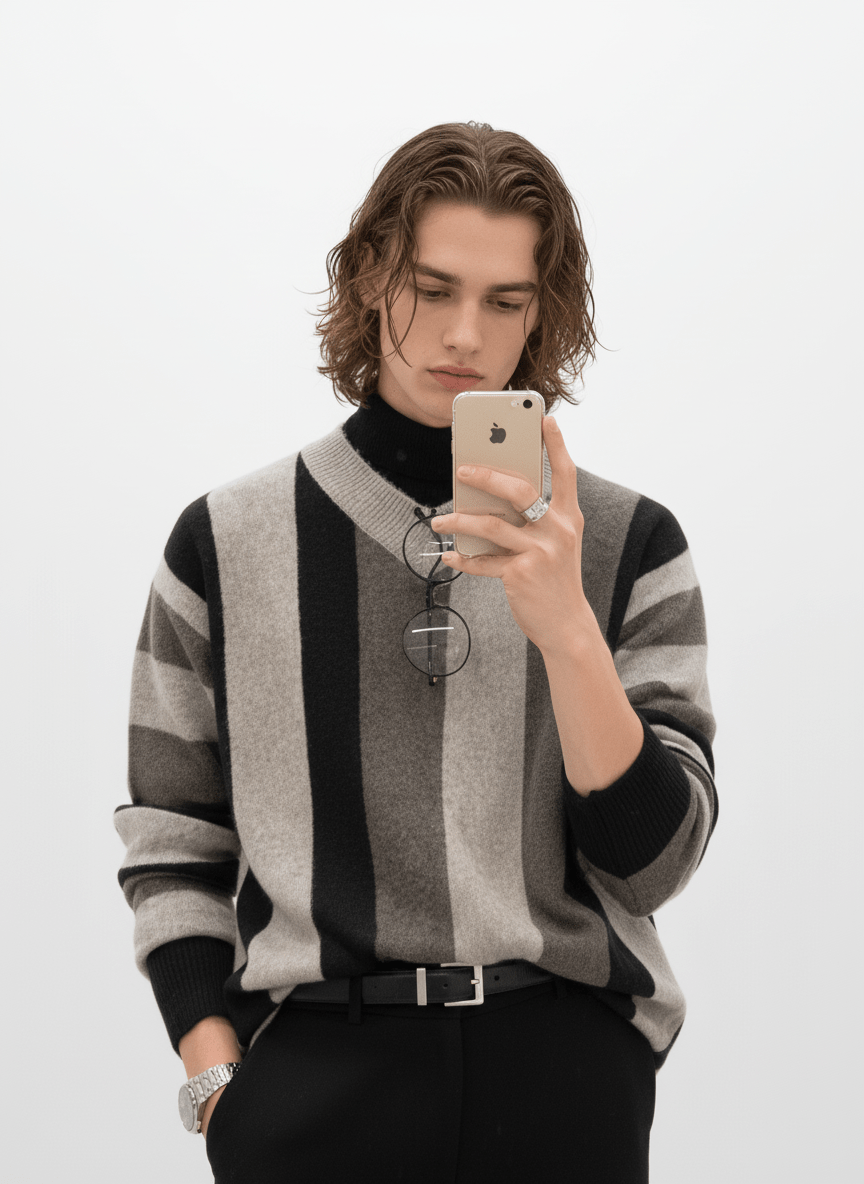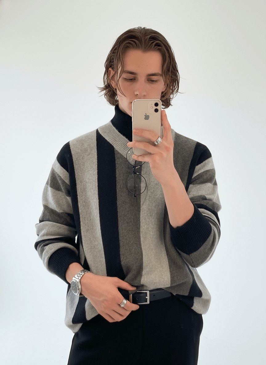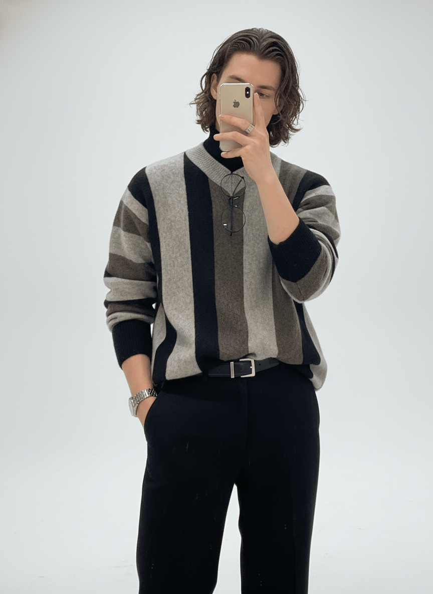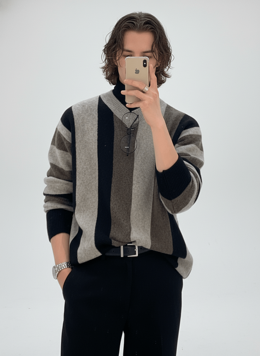 [MRCYC] V 넥 콘트라스트 오버 스웨터 na629